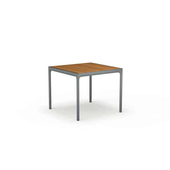 HOUE – FOUR havebord 90×90 cm – Bambus – Flere varianter HOUE har med kollektionen FOUR skabt indbydende haveborde i smuk bambus og stål. FOUR bordene kommer i fire størrelser: 90×90, 160×90, 210×90 og 270×90 cm samt som barborde. FOUR bordene har et stel